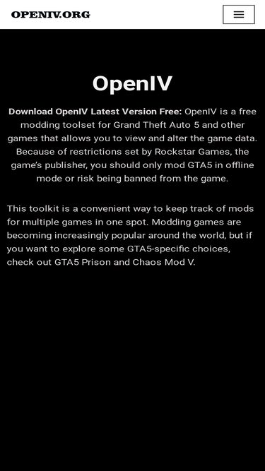 96%OpenIV is a free modding toolset for Grand Theft Auto 5 and other games that allows you to view and alter the game data.