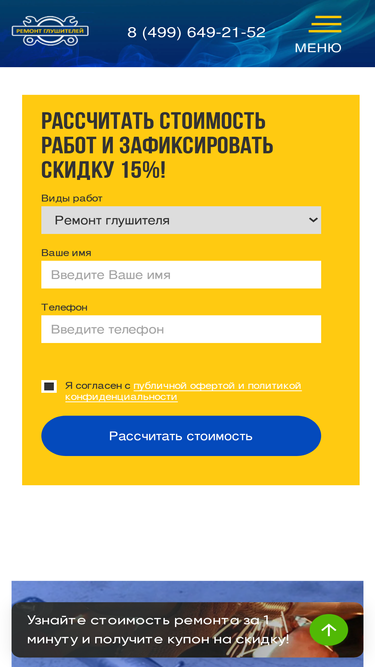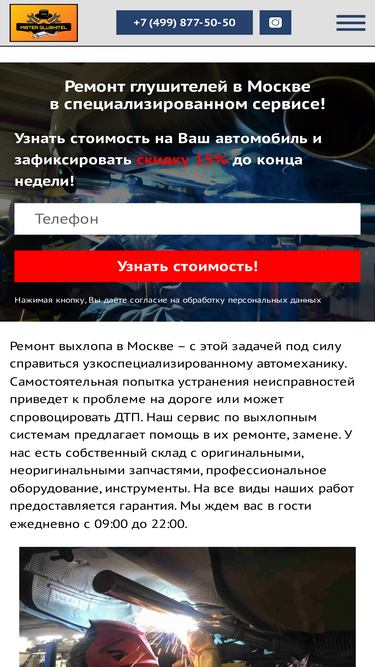 89%ремонт и замена выхлопа всех марок авто в автосервисе москвы по доступным ценам! замена гофры глушителя, установка спортивного глушителя, удаление катализатора. бесплатная диагностика, гарантия 365 дней, мастера с опытом работы более 8 лет, работаем без выходных.