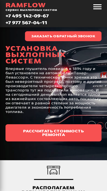 86%ramflow это сервис по ремонту и тюнингу выхлопных систем в москве. любые работы для легковых и грузовых автомобилей, мотоциклов. катализаторы, глушители
