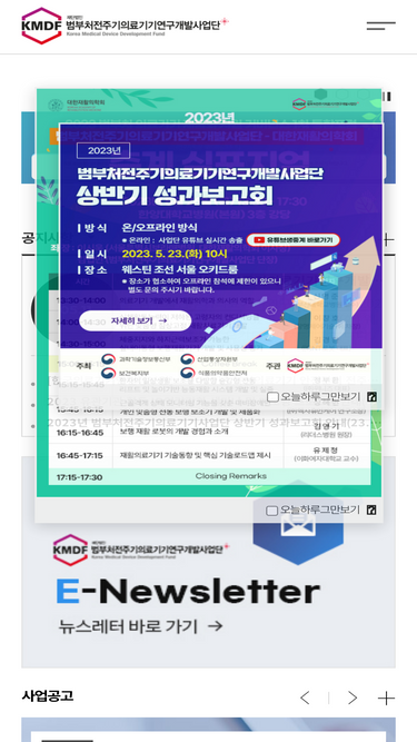 (재)원주의료기기테크노밸리 웹사이트의 메인페이지입니다.