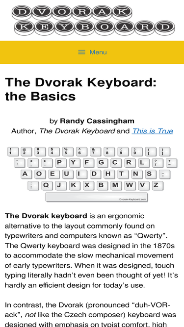 91%by Randy Cassingham Author, The Dvorak Keyboard and This is True The Dvorak keyboard is an ergonomic alternative to the layout commonly found on typewriters and computers known as "Qwerty".