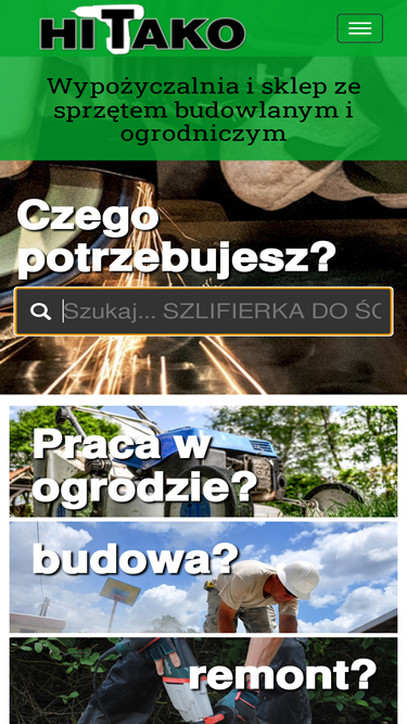 72%sklep ze sprzętem budowlanym ➤ ogrodniczym. wypożyczalnia hitako oferuje państwu ➤ wynajem ➤ sprzedaż ➤serwis - elektronarzędzi i sprzętu budowlanego. zapraszamy do kontaktu! białystok na ul. owsianej 6 ☎ tel. (85)7423544, na ul.wyszyńskiego 6a ☎ tel. (85)7423544