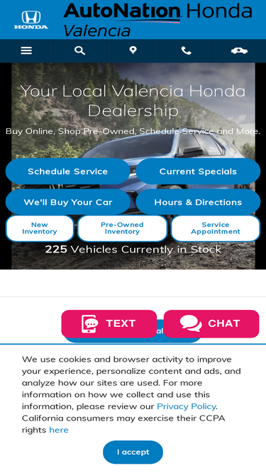 94%autonation honda valencia is your local santa clarita area honda dealer. browse our new and pre-owned inventory, schedule service, and more!