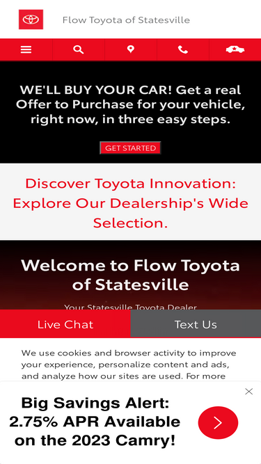 100%Flow Toyota of Statesville of Concord NC serving Statesville, Hickory, Lake Norman, is one of the finest Concord Toyota dealers.