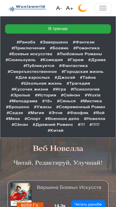 87%Условия пользования сервисом Все содержимое нашего веб-сайта wuxiaworld.ru (Контент) собрано из общедоступных источников в Internet или добавлено нашими читателями посредством технических инструментов сайта, и доступно для чтения всем участникам и посетителям. Если вы хотите использовать наш Контент