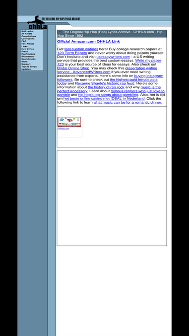 According to Similarweb data of monthly visits, rapdict.org’s top competitor in February 2026 is ohhla.com. rapdict.org 2nd most similar site is rap.wikia.com, and closing off the top 3 is rapmetrics.com.