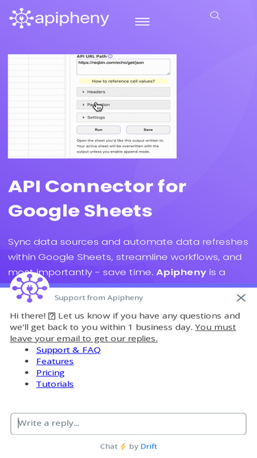 100%Apipheny: Seamlessly import API data into Google Sheets or export data from Google Sheets to an API – all for free. Get started now.