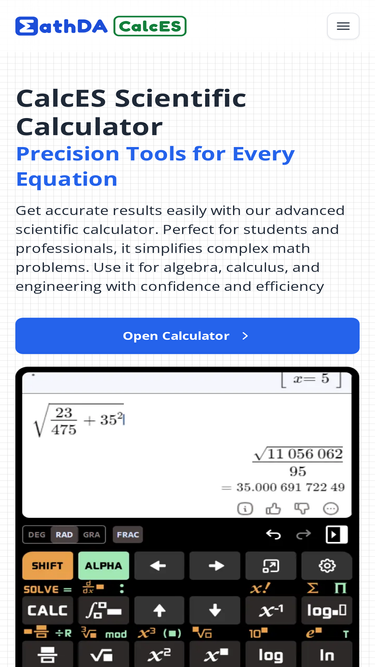 94%online scientific calculator from mathda: perform calculations with basic math to equation solver, integral, derivative, matrix, vector, statistics...