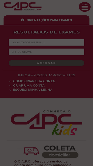 65%Consulte aqui os resultadosdos seus exames! COLETA DE SANGUE DOMICILIAR O CAPC oferece o serviço de coleta domiciliar com agilidade e melhor atendimento