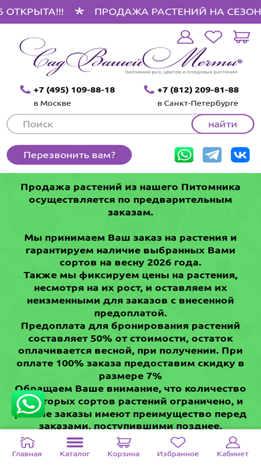 95%огромный выбор саженцев роз, цветов и плодовых растений в москве и подмосковье от питомника «сад вашей мечты». большой каталог саженцев, собственная доставка.