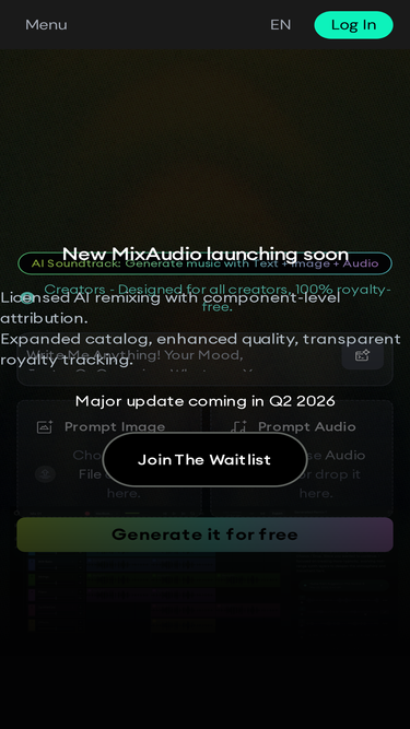 88%As creators, express your musical imagination with MixAudio 믹스오디오, a multimodal AI music generator - BGM, REMIX, RADIO.
