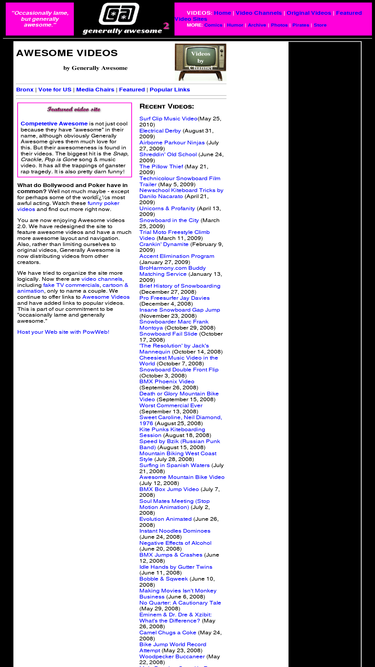 91%awesome videos created by the generally awesome team. genres include fake tv commercials, funny short films and other random videos. other videos from select awesome video resources
