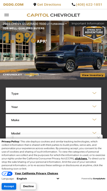 98%capitol chevrolet offers an extensive inventory, as well as competitive lease specials, finance options, and expert auto repair in san jose, ca.