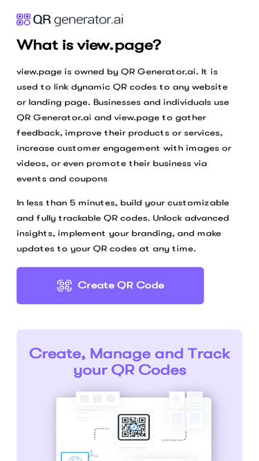 100%View.page with your logo, frame, colors & more. Create, manage and statistically track your QR codes. For URL, vCard, PDF and more