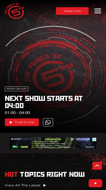 49%Turn up the volume with 5FM, South Africa’s leading youth radio station. Fresh music, big personalities, live shows, podcasts, and the energy of the nation.