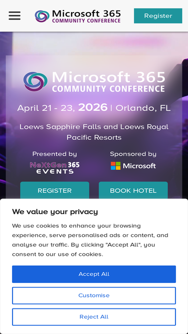 100%Microsoft 365 Community Conference is a premier opportunity to hear experts from Microsoft and around the world share their experience and knowledge about a variety of topics such as cloud services, best practices & real world project insights.