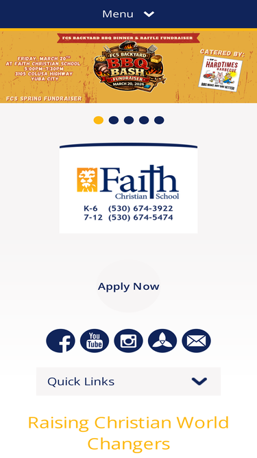 99%faith christian school (fcs) is an independent, non-denominational christian school in yuba city, california. established in 1975, the school is housed on two campuses and serves 300-400 kindergarten through 12th grade students and their families