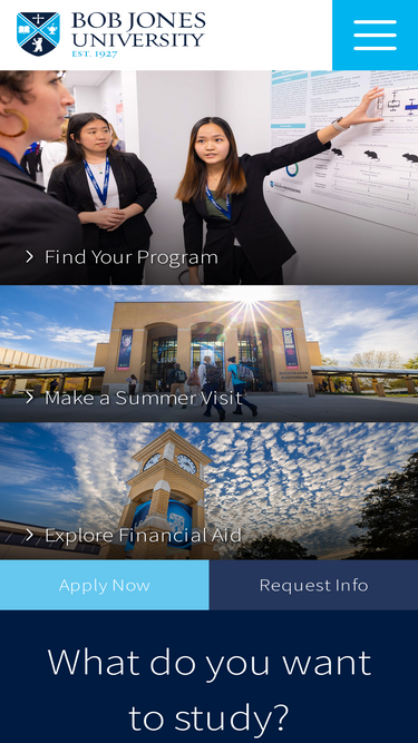 98%Located in Greenville, South Carolina, Bob Jones University is an accredited Christian liberal arts university focused on educating students to reflect and serve Christ.
