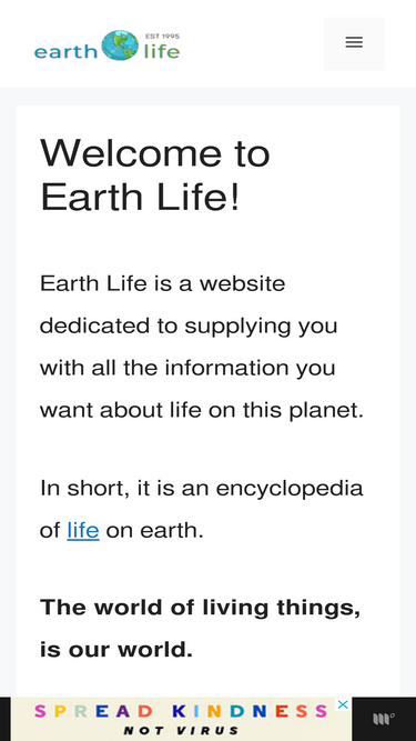 88%Earth Life. An encyclopedia of life on earth. In short, it is an encyclopedia of life on earth. A world of interdependence and relatedness.