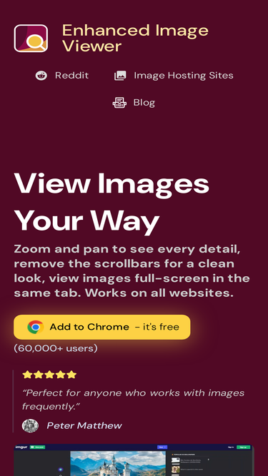 68%Stop fighting Reddit's image viewer. Get full-screen viewing, smooth zoom, and original image quality. Free Chrome extension with 50,000+ users.