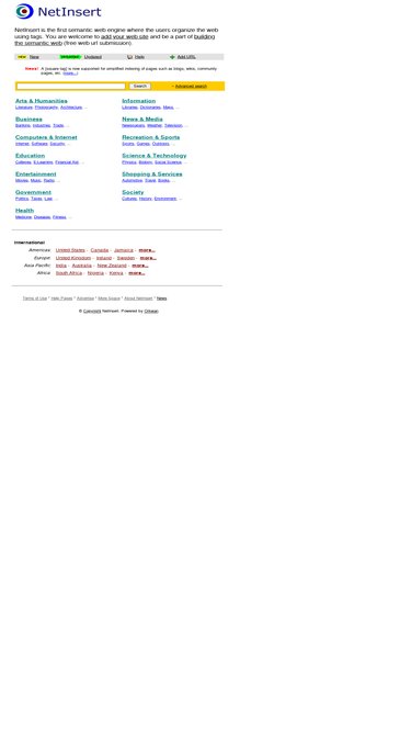 75%netinsert is the first semantic web engine and directory where the users organize the web using tags. you are welcome to add your web site and be a part of the next step in internet search services (free web url submission).