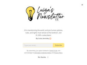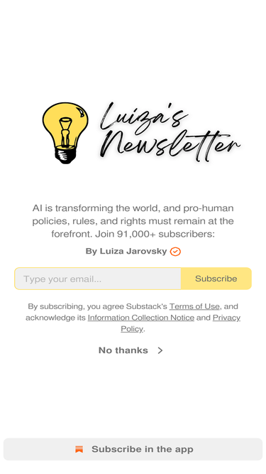 73%AI is transforming the world around us and creating new risks. Join over 79,000 subscribers to stay ahead and lead the change. Click to read Luiza's Newsletter, by Luiza Jarovsky, PhD, a Substack publication.
