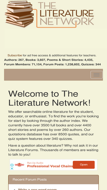 76%searchable online literature. books by famous authors. author biography's. literature quotes
