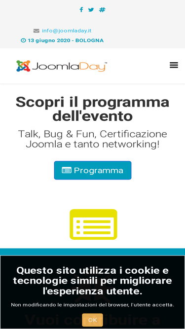 62%Tredicesima edizione del JoomlaDay Italia, evento gratuito con speaker internazionali e sponsor da tutto il mondo. Una giornata dedicata a Joomla tra talk, workshop e networking.