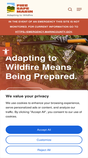 71%Fire Safe Marin is dedicated to reducing fire hazards, promoting fire safety awareness, and helping Marin County residents adapt and prepare for wildfires.