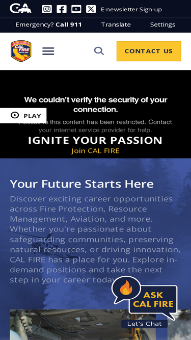 80%Interested in a career with CAL FIRE? We’re here to help! For job opportunities, application guidance, and general recruitment questions, fill out your information below, and a member of our Talent Acquisition and Outreach Unit will follow up with you or call our hotline at (916) 894-9585. Have questions about examinations? For assistance with examination-related inquiries, email CALFIREexams@fire.ca.gov or call (916) 894-9580. Want to stay in the loop? Subscribe to our e-newsletter for the latest job openings, recruitment events, application tips, and a look into CAL FIRE’s mission and workplace culture. Sign up here: CAL FIRE Career Corner E-newsletter