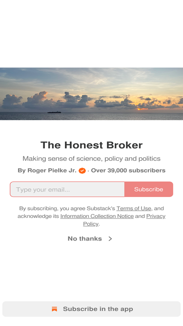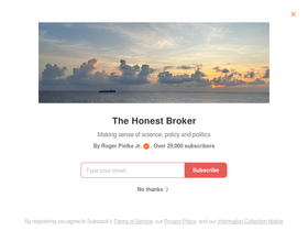 94%Making sense of science, policy and politics. Click to read The Honest Broker, by Roger Pielke Jr., a Substack publication with tens of thousands of subscribers.