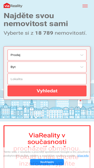 99%Nabídka 960 realitních kanceláří na jednom místě. Denně tisíce novinek. Byty k prodeji či pronájmu, domy, pozemky, chaty, chalupy i kanceláře. Soukromá inzerce zdarma.