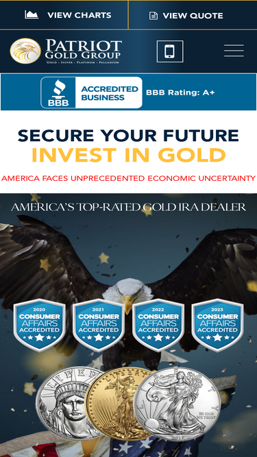 92%Patriot Gold Group is Consumer Affairs' top-rated gold and silver coin dealer in 2016 and 2017. Call (800) 974-4653 (GOLD) to use gold as an investment to protect your retirement savings. Visit www.patriotgoldgroup.com for the latest gold and silver price charts, news and insights.