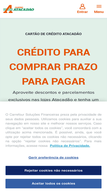 88%só com o cartão atacadão você pode comprar a prazo nas lojas atacadão. aproveite descontos e parcelamentos exclusivos! confira as vantagens e peça o seu!