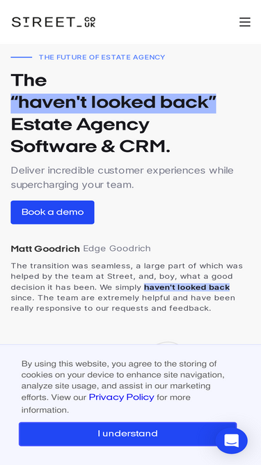 85%If you have a question about Street.co.uk, the best place to check is our FAQ section. Here you can find out about switching CRMs, our pricing, features and more.