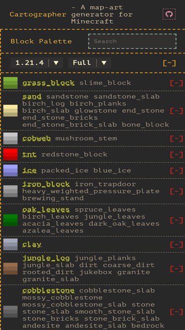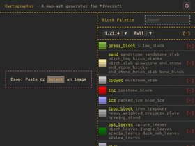 create minecraft map art from your own images. customize your block palette. preview artwork and generate downloadable schematics compatible with most 3rd party mods, e.g. worldedit, litematica, to recreate it in your own minecraft world.