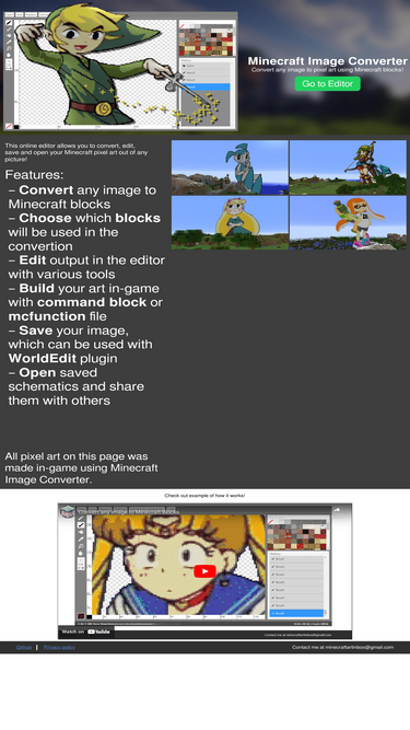 85%convert any image to pixel art using minecraft blocks! this site allows you to convert, edit, save and open your minecraft pixel art out of any picture.
