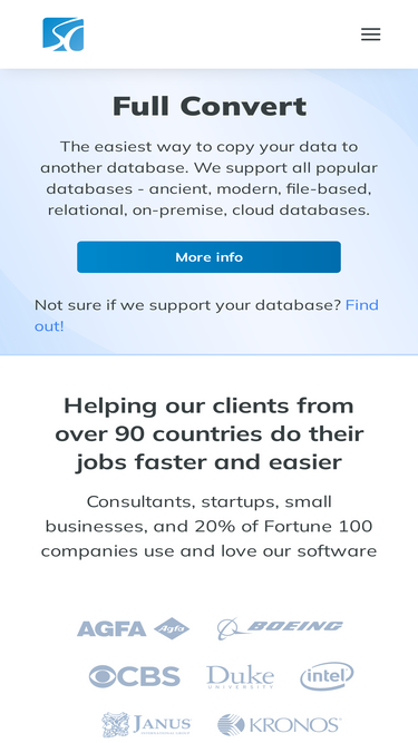 98%full convert is industry standard for database migration. over 40 database formats supported with unparalleled speed, ease of use, and migration customization.
