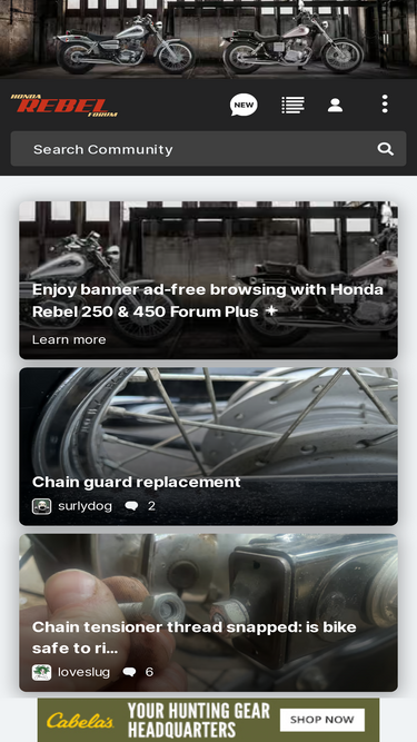 38%A forum community dedicated to the Classic Honda Rebel 250 & 450. Come join the discussion about performance, modifications, troubleshooting, maintenance, reviews, and more! Also visit our forum for 2017+ Honda Rebel 300, 500 & 1100 at hondarebel3forum.com