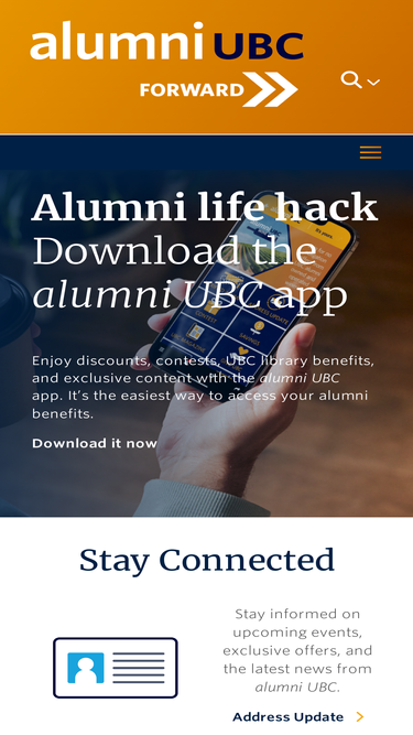 88%alumni UBC App FAQ What are the benefits of the app? How do I get the alumni UBC mobile app? Search for ‘alumni UBC’ on your phone’s store (Play Store or Apple Store) and then download the app. Log in to the app using your name and birthday information. What if my phone is neither...
