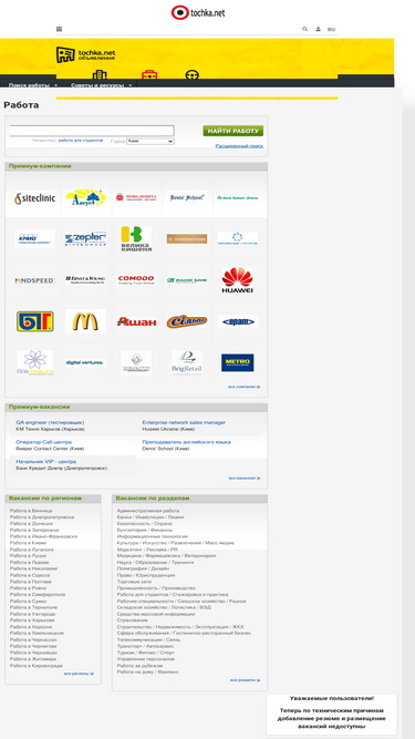 82%работа в киеве, харькове, донецке и других городах украины. резюме и вакансии, высокооплачиваемая работа. удобный поиск работы. ищите работу на job.tochka.net