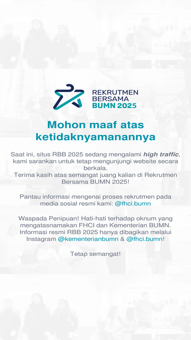 89%Rekrutmen Bersama BUMN 2025 membuka lowongan kerja di lebih dari 100 Perusahaan BUMN Grup bagi Putra Putri Terbaik di Indonesia untuk belajar, bertumbuh dan berkontribusi untuk Indonesia.