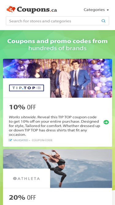 90%Find verified coupon codes, promo codes, and free shipping offers from hundreds of stores and retailers. Use Coupons.ca whenever you shop online to save money!