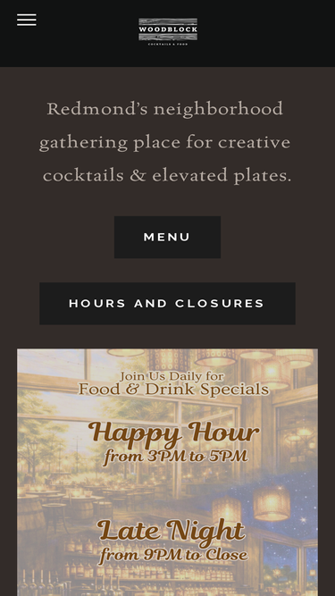 76%Woodblock's food is contemporary, rustic, focusing on local, seasonal, organic, and sustainable ingredients. It's upscale casual with some Mediterranean (Italian, Spanish, French, Moroccan), Pacific Island and Southern flavors.