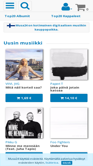 98%musa24.fi:stä voit ostaa ja ladata mp3-musiikkia tietokoneellesi täysin laillisesti.