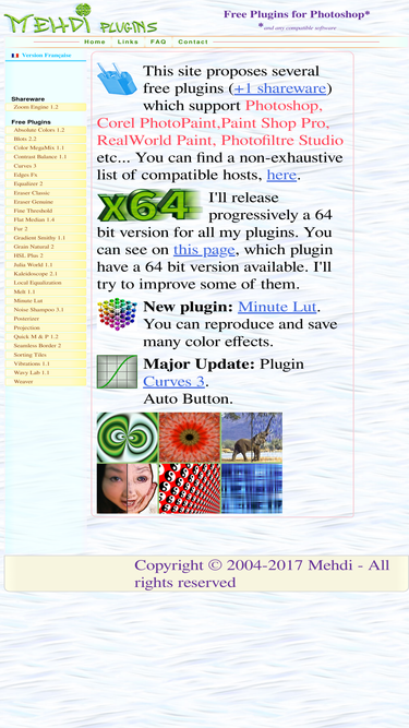 100%mehdi's site offers a free collection of photoshop-compatible filter plugins. use these plugins to enhance photos or for creative effects.