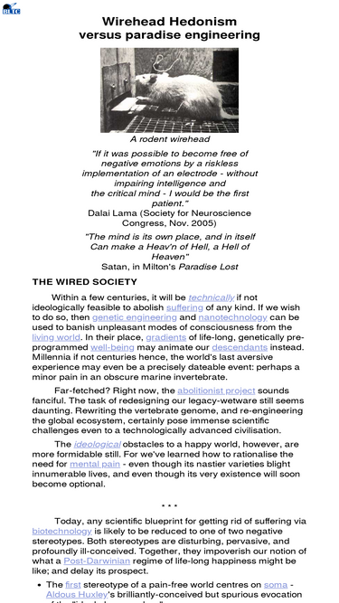 88%any blueprint for eliminating suffering from the living world gets assimilated to two misconceived sterotypes: brave new world or wirehead hedonism