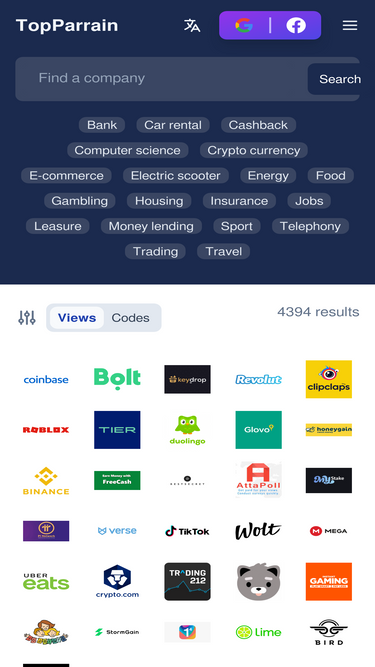 82%TopParrain is a worldwide community of people sharing promo codes and referral codes. We allow everyone to get discounts, credits or bonuses on services and products by inviting and referring each other to the companies we love the most.
