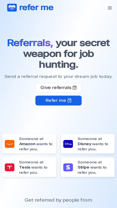 89%Request referrals from over 500 companies across all industries — tech, finance, healthcare, education, and more.