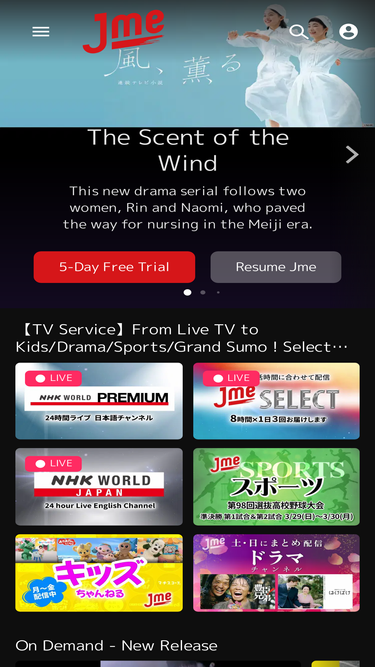 89%Jme is a streaming service for Japanese programs in the U.S. & Canada. Watch on your PC, mobile devices, smart TVs, Roku & Amazon Fire TV!
